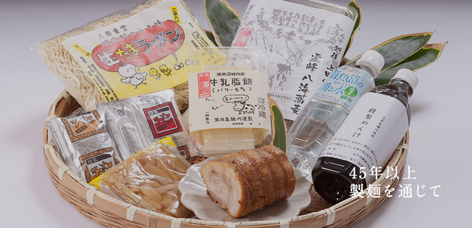 45年以上、粉一筋でやってまいりました笠原製麺所の麺は、地元産の原料を使ったり、単一の粉を使わないなどの工夫を重ねています。